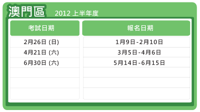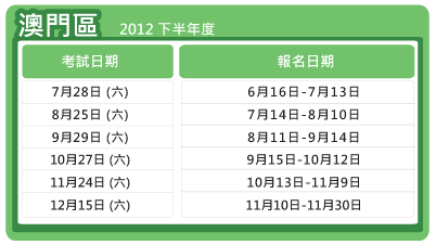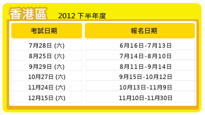 查詢及報名: - 網上報名及繳費服務,可按此處進入 - 致電 +852 2851 3822 (香港) 或 +853 6261 6000 (澳門) - 電郵致 info@TOEIC.com.hk
