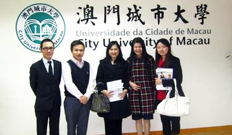【節錄自澳門城市大學網站(2012-3-24)】澳門專業導遊協會會長胡惠芳小姐於3月9日到訪澳門城市大學繼續教育學院,與城大副校長兼繼續教育學院院長梁文慧教授及TOEIC® 多益英語考試香港及澳門區代表 - 聰穎教育的代表會面,並受到兩方的熱烈歡迎。